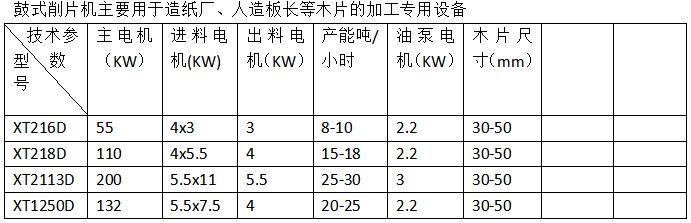 鼓式削片機(jī)主要用途為人造板廠、造紙廠、硅廠、生物質(zhì)顆粒廠、電廠、香菇原料等用途的木材削片專用設(shè)備,用于各種樹(shù)木樹(shù)枝、邊角料、竹子及農(nóng)作物的碎片加工,機(jī)型分為:XT216D、XT218D、XT2113、XT1250D、XT860和XT1300及XT1400系列等,動(dòng)力可用電和柴油機(jī)作動(dòng)力,削片方式主要為刀片式刀滾削片,產(chǎn)量每小時(shí)8--40噸。